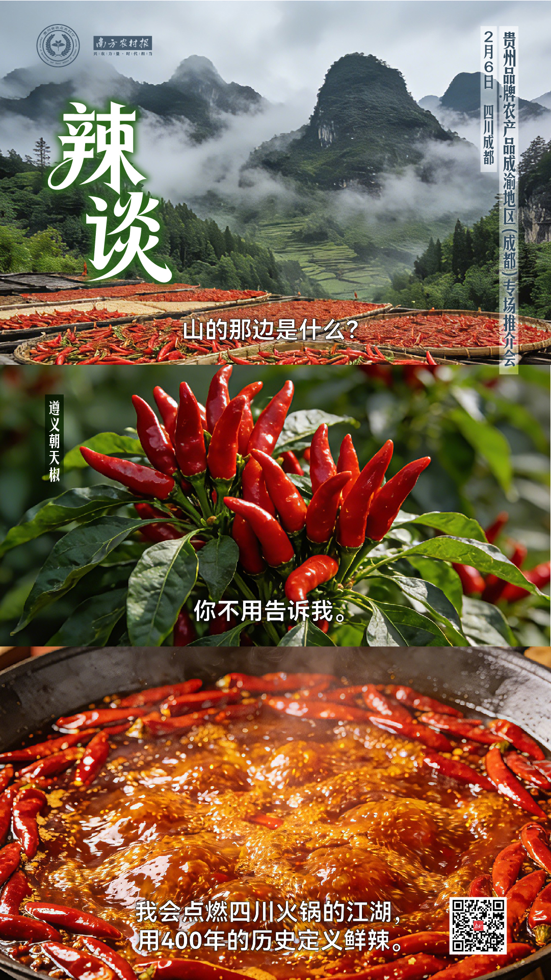 2月6日,品特产 寻年味·贵品出山黔味入川——贵州品牌农产品(成都)专场推介会将在成都市金牛万达广场盛大启幕。黔川大厨PK、特色“贵品”年货展销、双锅盛宴品鉴......活动亮点颇多,诚邀您在巴蜀大地开启一段寻味“地道黔味”的美食之旅。